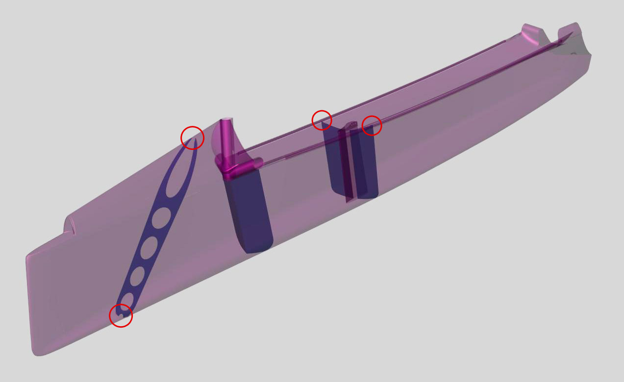 The MACH 2 has small drain holes in each bulkhead. These little holes allow water to flow through the boat so it can be emptied via the bung holes in each tank.